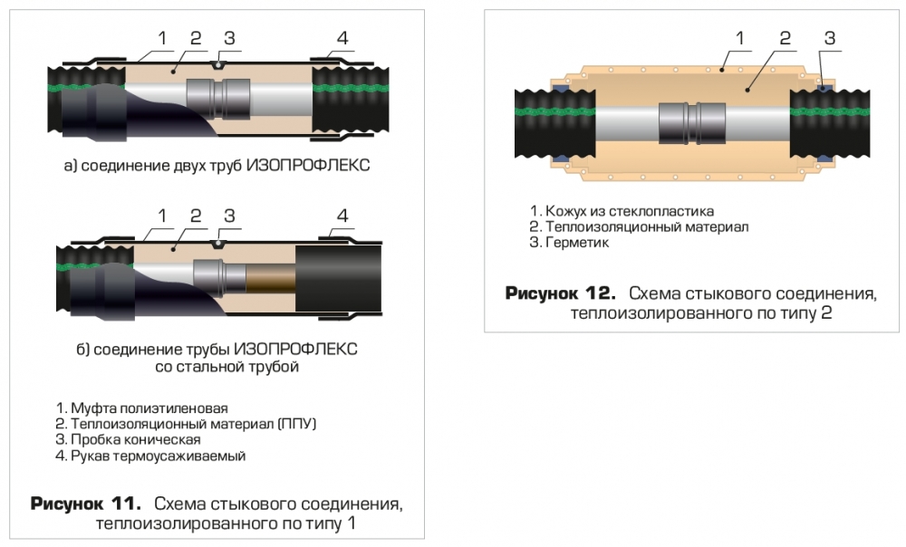 Заводские комплекты для соединения стыков и пресс-тройников теплоизолированных труб Изопрофлекс обеспечивают качественную тепло и гидроизоляцию мест соединений, надежность и долговечность которых не уступает основным параметрам самого трубопровода.
